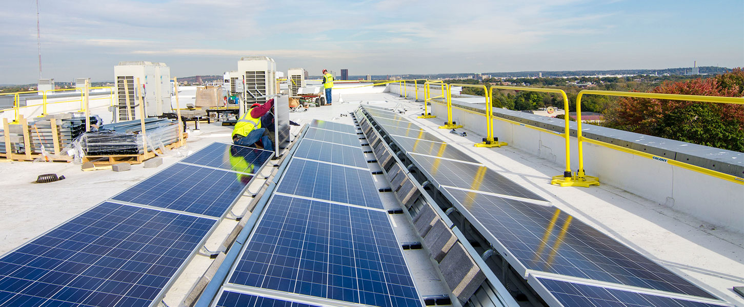 Celentano Hall, a LEED Gold-certified residence hall, includes — among other features — roof-top solar panels that students