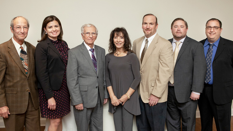 (L-R) President Steve Kaplan; Carolina Ramirez-Blier ’09; Nicholas Squeglia ’60 A.S., ’63 A.S.; Jean O’Brien (wife of William (Bill) O’Brien ’64; Sean O’Brien (Son of William (Bill) O’Brien ’64; Cory Hall (MITRE); and Mark Guido (MITRE).