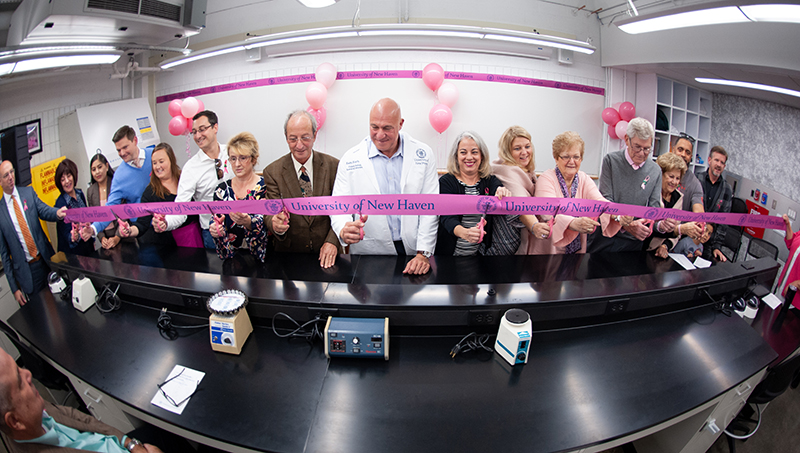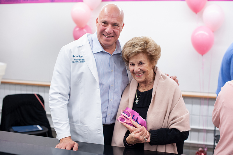 Although Colleen died of breast cancer last September, Sam continued her fight against the devastating disease, supporting the development of a state-of-the-art research laboratory at the University of New Haven. Last week, as part of its commemoration of National Breast Cancer Awareness Month, the University dedicated the Colleen Sorbello Research Laboratory, honoring Colleen’s legacy.