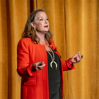 Eileen Scully, founder and CEO of The Rising Tides, a consulting firm dedicated to making workplaces better for women, was the first of two featured speakers. She encouraged women to support each other as sponsors, mentors, and advocates, and she questioned some of the ways that women have been conditioned to think about themselves, their abilities, and their achievements.