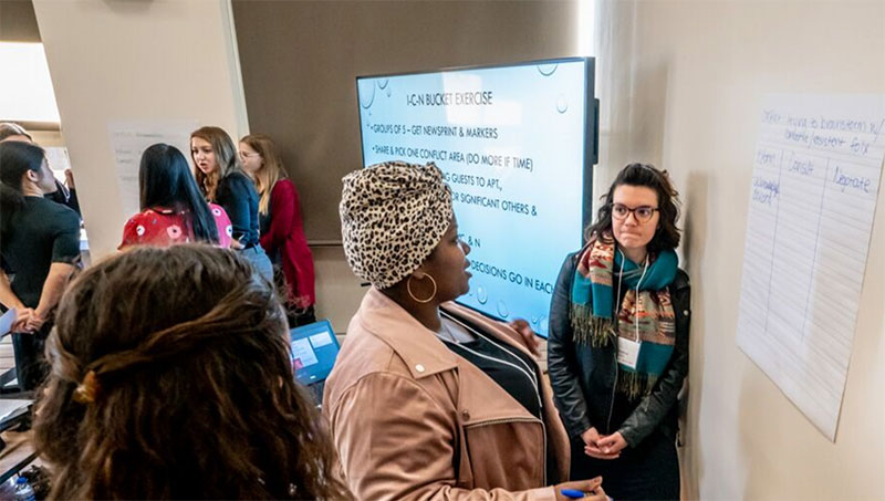 Later in the day, Diane Smith, a distinguished lecturer at the University, a Connecticut media veteran, and Emmy Award-winning journalist, led a discussion with Tiffany Dufu, the CEO and founder of The Cru, a peer coaching service for women. The author of Drop the Ball: Achieving more by Doing Less, Dufu discussed how "dropping the ball" can enhance women's lives and reduce stress.