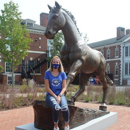 Amanda Pappas ’21 had a great seat – and all the comforts of home – as she celebrated the University’s Centennial with hundreds of her fellow Chargers.