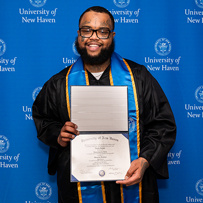 As part of the University of New Haven Prison Education Program and the Yale Prison Education Initiative, which enables individuals such as Jalloh who are incarcerated at MacDougall-Walker Correctional Institution in Suffield, Conn., to earn college credits, Jalloh has had the opportunity to pursue higher education. He was recently among seven students to earn an associate of arts degree in general studies. He and his fellow members of the inaugural graduating class were recognized as part of a Commencement ceremony.
