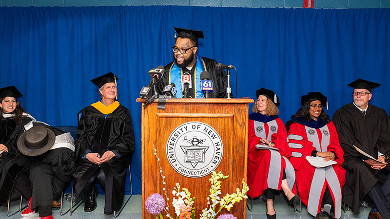 In 2021, the University of New Haven joined the Yale Prison Education Initiative (YPEI) enabling incarcerated students to matriculate in two- and four-year degrees, creating pathways for released students on campus. The program is designed to offer students a liberal arts curriculum that offers opportunities for them to explore a variety of disciplines and interests. Graduates described exciting and meaningful classes that covered topics from A Tale of Two Cities by Charles Dickens to climate change. This Commencement was the first of the program and the partnership.