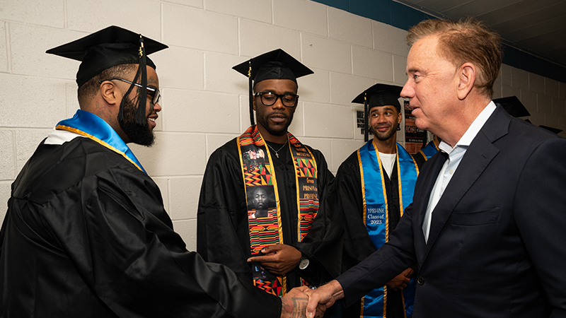 After the conferral of degrees, the new grads walked proudly around the room in their caps and gowns as the audience cheered and celebrated with them. Among those in attendance were several current students in the program, whom Gov. Lamont said he hopes to see among the next graduates in the coming years.