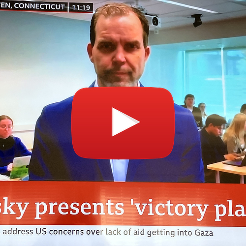 Associate Professor Matthew Schmidt discusses Zelensky’s "victory plan" for Ukraine. He conducted the live interview with BBC News from the classroom with some of his national security students.